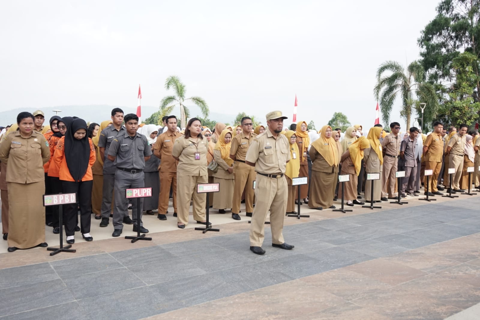 Apel pagi di halaman Kantor Bupati, Senin (26/05/2025), yang diikuti oleh seluruh Aparatur Sipil Negara (ASN) dan Non ASN lingkup Pemkab Lutim. (hms)