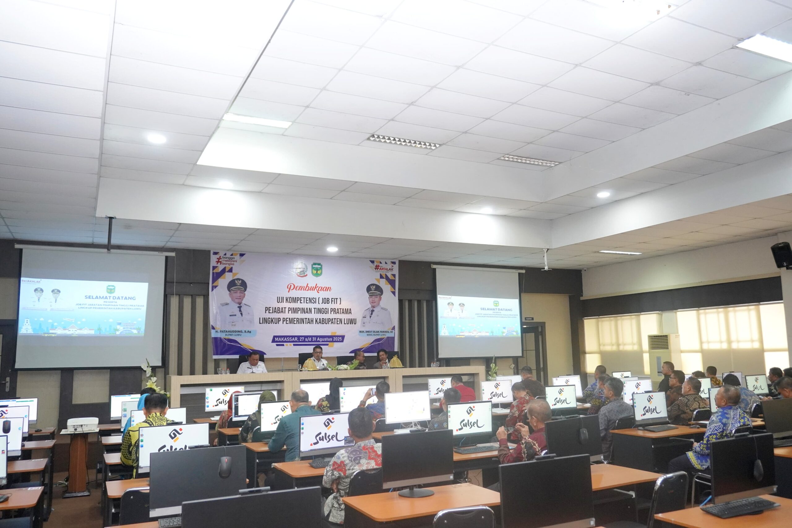 MAKASSAR, TEKAPE.co – Sebanyak 33 Kepala Organisasi Perangkat Daerah (OPD) Pemerintah Kabupaten (Pemkab) Luwu mengikuti Uji Kompetensi (Job Fit) Jabatan Pimpinan Tinggi (JPT) Pratama yang digelar oleh Badan Kepegawaian dan Pengembangan Sumber Daya Manusia (BKPSDM) Kabupaten Luwu.