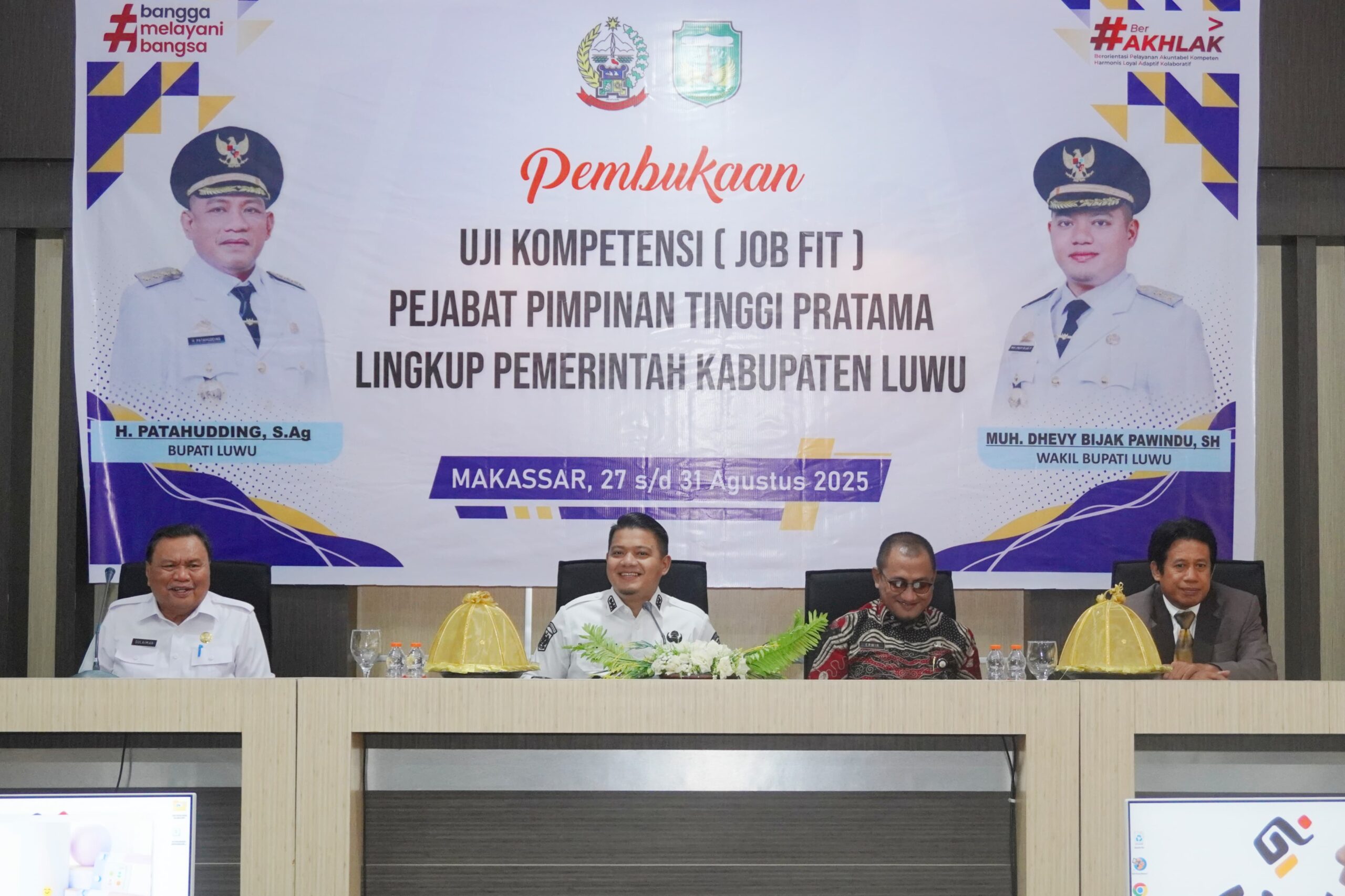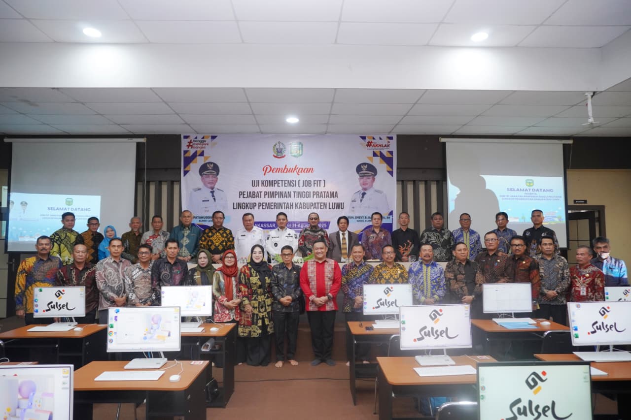 Sementara itu, Kepala BKPSDM Luwu, Muh. Rudi, M.Si, menjelaskan bahwa uji kompetensi ini diikuti oleh 33 pejabat pimpinan OPD. Para peserta akan melalui serangkaian tahapan, mulai dari penilaian rekam jejak, presentasi makalah, wawancara, hingga dialog visi kepemimpinan bersama Bupati dan Wakil Bupati Luwu.