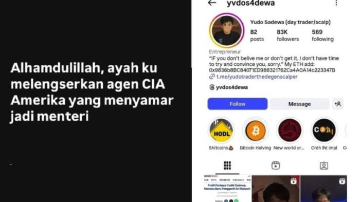 Tak lama berselang, akun Instagram Yudo, @yvdos4dewa, yang memiliki lebih dari 83 ribu pengikut, mendadak hilang.