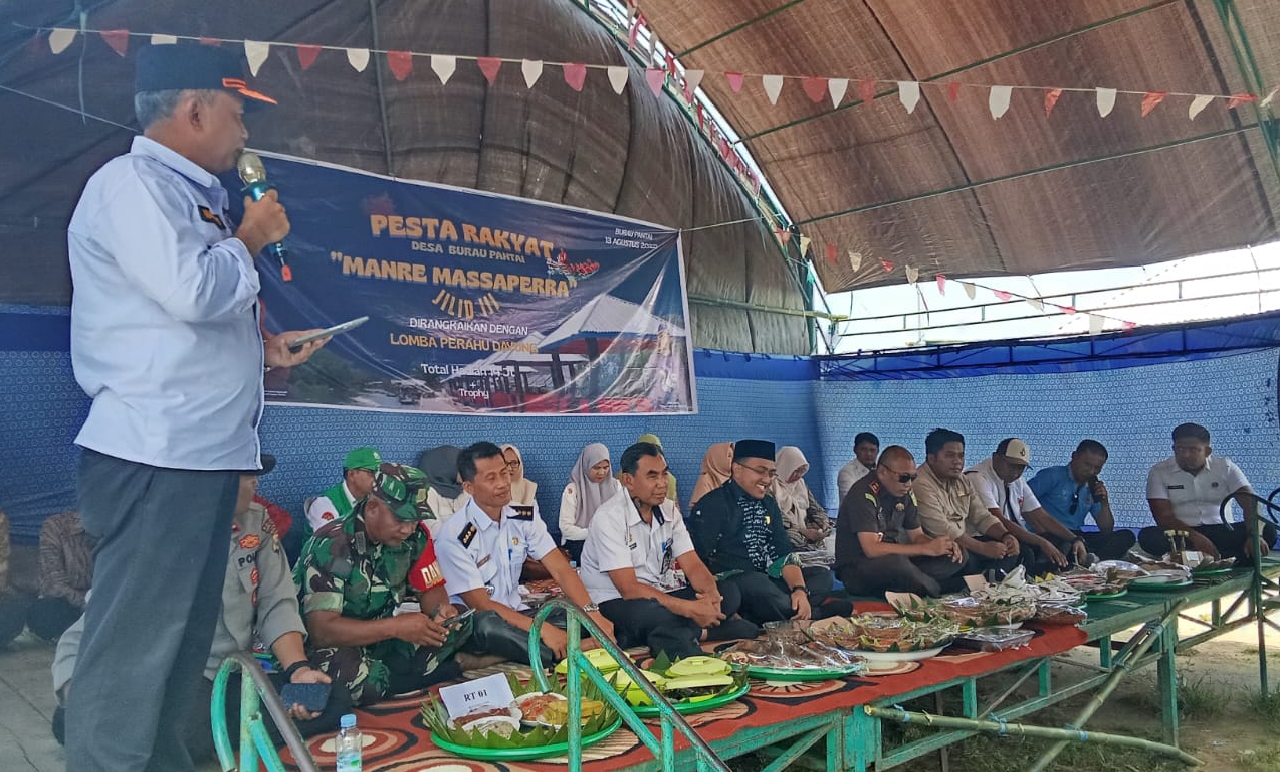 LUWU TIMUR, TEKAPE.co — Asisten II Setdakab Luwu Timur, Masdin, secara resmi membuka Pesta Rakyat dan syukuran Manre Massaperra di Desa Burau Pantai, Rabu (13/8/2025).