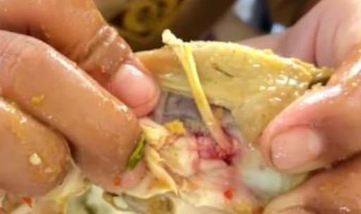 “Waktu saya makan ayamnya, saya lihat ada darah di ayamnya, jadi kubuang,” kata Setiawan.