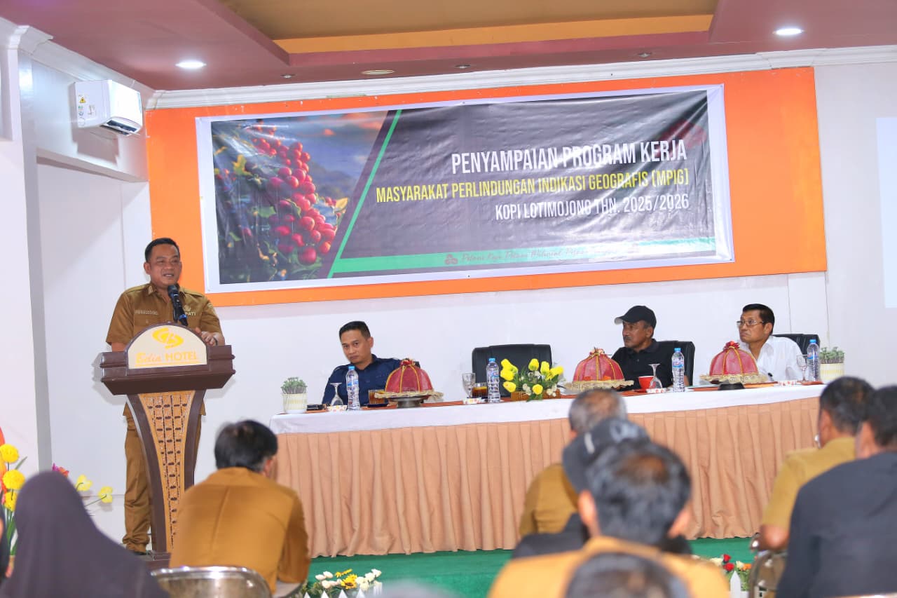 LUWU, TEKAPE.co – Bupati Luwu, H. Patahudding, mendorong para pengusaha dan petani kopi untuk meningkatkan produksi serta menjaga kualitas Kopi Arabika Latimojong sebagai komoditas unggulan daerah. Harapan itu ia sampaikan saat menghadiri pemaparan program kerja Ketua Masyarakat Perlindungan Indikasi Geografis (MPIG) Kopi Arabika Latimojong Kabupaten Luwu, Brigjen TNI (Purn.) Muslimin Akib, di Aula Pertemuan Hotel Belia, Belopa, Senin, 24 November 2025.