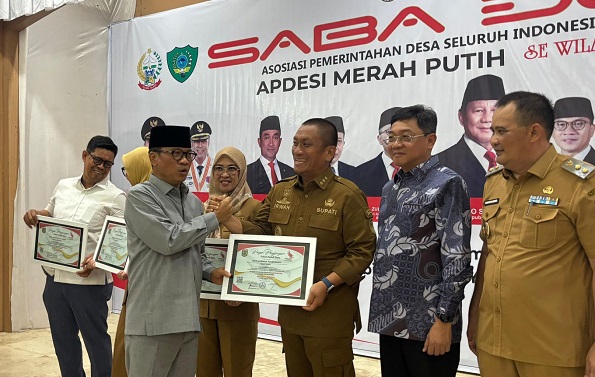 MAROS, TEKAPE.co – Bupati Luwu Timur, Irwan Bachri Syam menerima penghargaan sebagai “kepala daerah yang peduli desa” pada kegiatan Saba Desa, Asosiasi Pemerintah Desa Seluruh Indonesia (APDESI) Merah Putih se-Indonesia Timur, di Gedung Serbaguna Pemkab Maros, Selasa (02/12/2025).