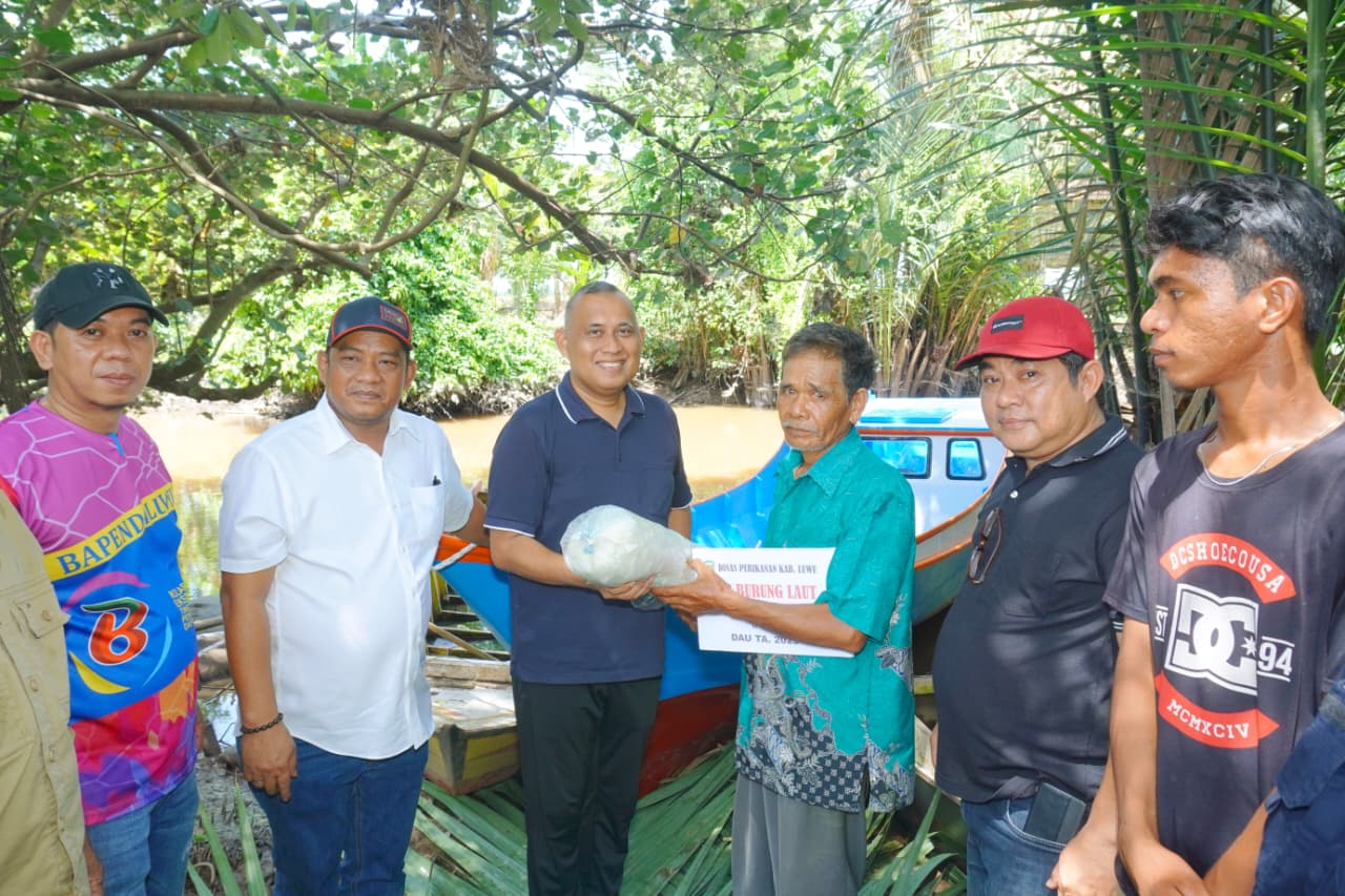 Bupati Luwu Patahudding menyerahkan bantuan mesin perahu kepada anggota Kelompok Usaha Bersama (KUB) Bintang Laut di Desa To’bia, Kecamatan Ponrang Selatan, Minggu, 30 November 2025. (ist)