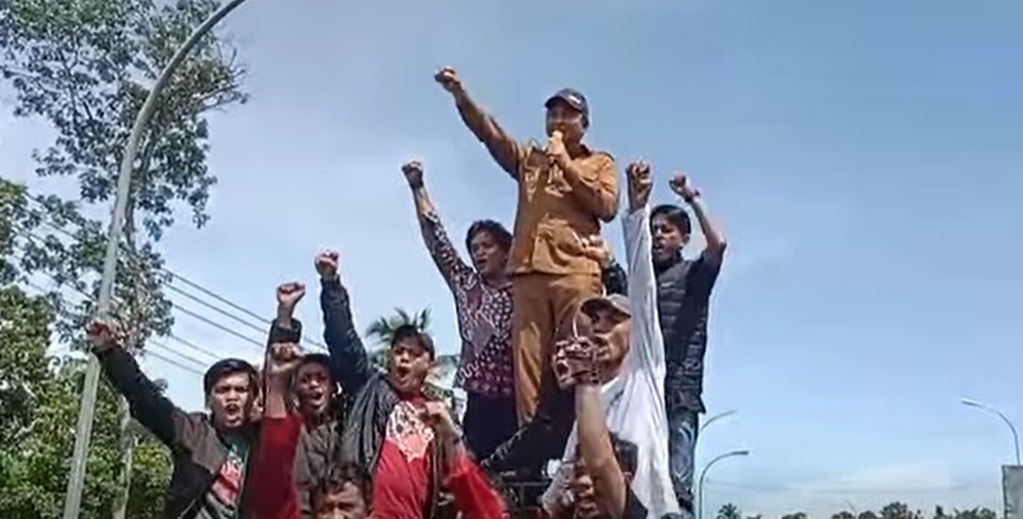 Aksi tersebut melibatkan ratusan massa dari kalangan masyarakat, pemuda, dan mahasiswa.