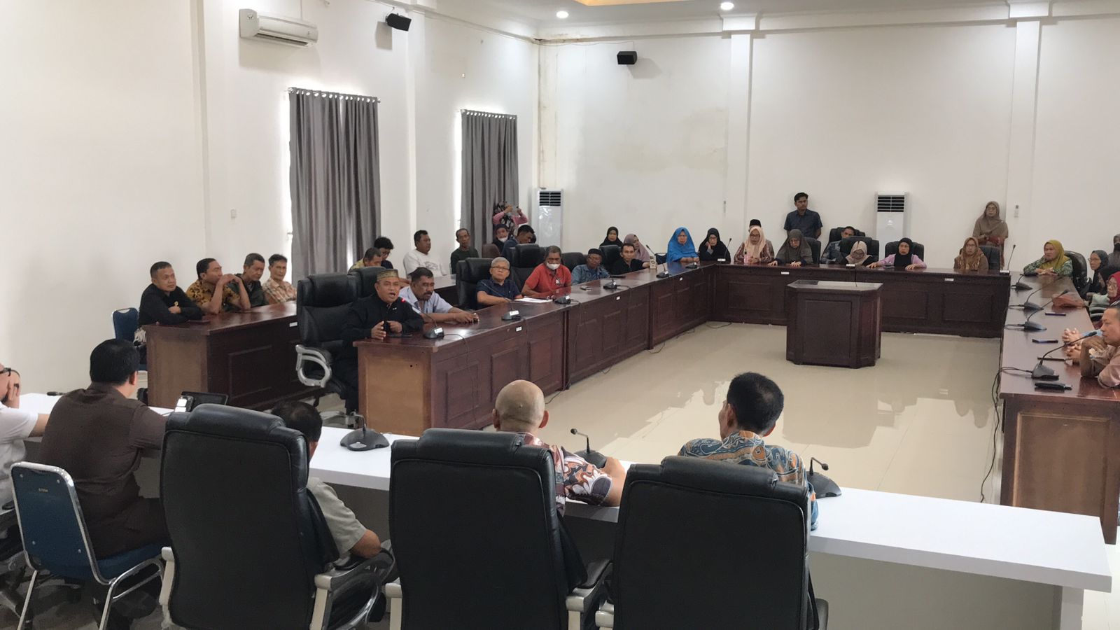 Ketua DPRD Palopo, Darwis, menerima aspirasi calon jemaah haji dalam rapat dengar pendapat di Gedung DPRD Palopo, Kamis (13/11/2025). (ist)