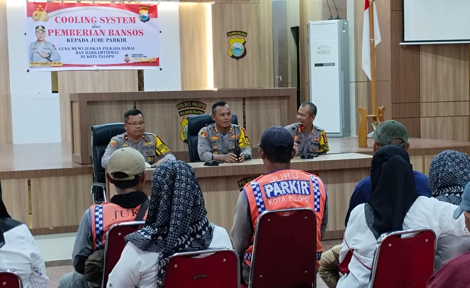 PALOPO, TEKAPE.co – Wujudkan Pilkada damai dan menjaga situasi keamanan dan ketertiban masyarakat (Harkamtibmas), Polres Palopo menggelar cooling system dengan memberikan bantuan social (Bansos) kepada juru parkir.