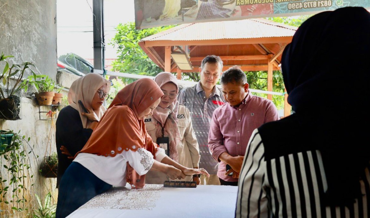 Rombongan Bank Indonesia Sulsel yang dipimpin Kepala Grup Bank Indonesia Provinsi Sulawesi Selatan, Wahyu Purnama A, meninjau seluruh tahapan produksi, mulai dari persiapan kain, pemanasan lilin, pencetakan motif, hingga melihat hasil akhir batik.