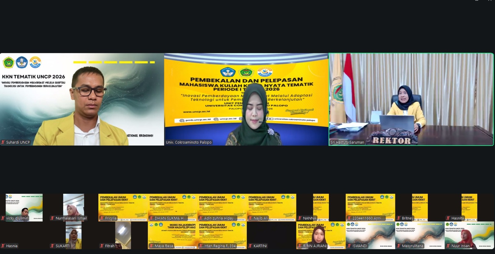PALOPO, TEKAPE.co – Universitas Cokroaminoto Palopo (UNCP) resmi menggelar pembekalan Kuliah Kerja Nyata (KKN) Tematik Tahun 2026 secara daring, Selasa (20/1/2026).