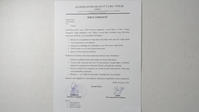 Permintaan itu dituangkan dalam surat tertanggal 18 Januari 2026 yang ditujukan kepada Pemerintah Kecamatan Malili.
