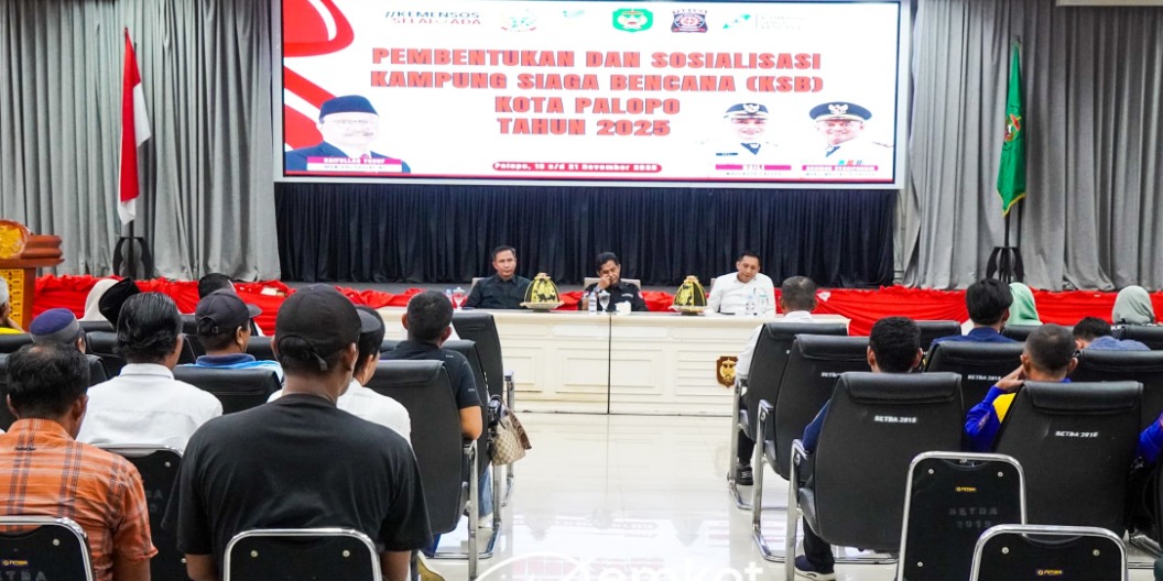PALOPO, TEKAPE.co – Kepala Dinas Sosial Kota Palopo, Zulkifli, resmi membuka Pembentukan dan Sosialisasi Kampung Siaga Bencana (KSB) Kota Palopo Tahun 2025 di Aula Ratona Kantor Wali Kota Palopo, Rabu (19/11/2025).