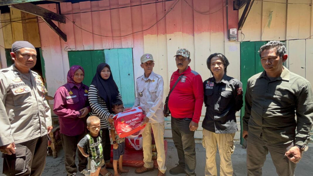 Dinas Sosial (Dinsos) Kota Palopo, saat menyalurkan bantuan kepada seorang warga di Kelurahan Ponjalae, Kecamatan Wara Timur, Kamis (11/9/2025). (ist)