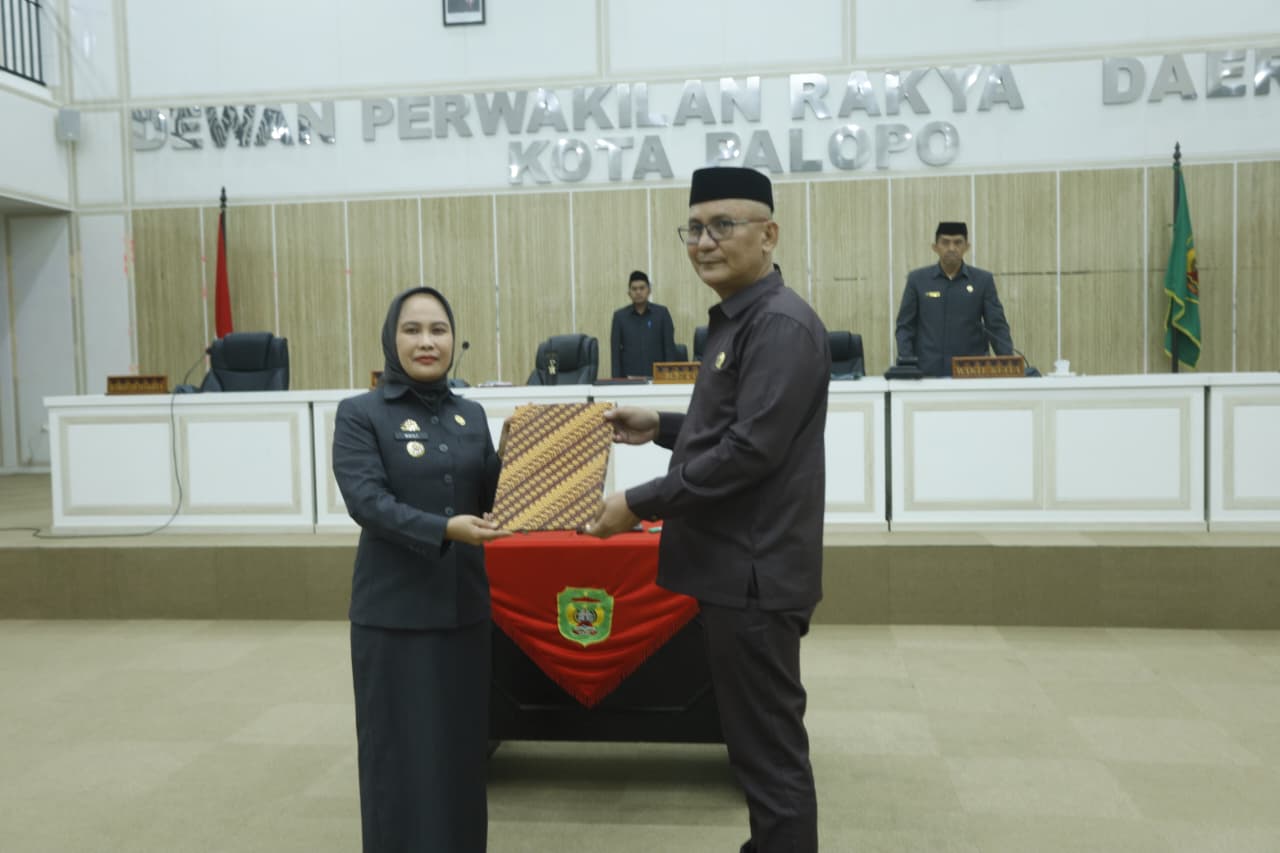 Penyerahan dokumen persetujuan enam ranperda berlangsung antara DPRD dan Pemerintah Kota Palopo pada rapat paripurna, Rabu (10/12/2025). (Dok: Pemkot Palopo)
