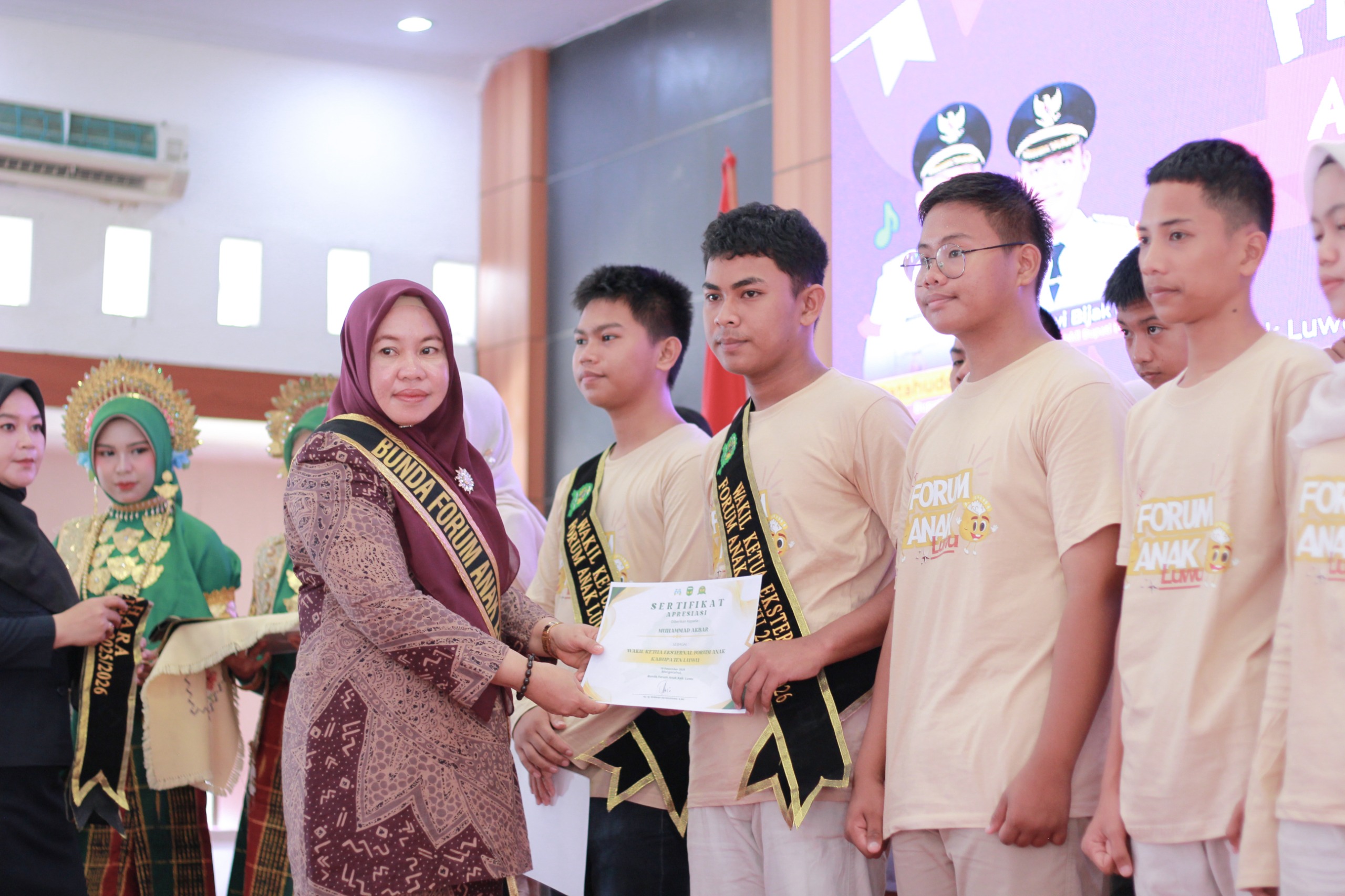 Pada kesempatan yang sama, dilakukan pengukuhan Pengurus Forum Anak Kabupaten Luwu periode 2025–2026. Forum Anak menjadi wadah partisipasi anak dalam menyampaikan aspirasi, gagasan, serta pandangan terkait pemenuhan hak anak di daerah.