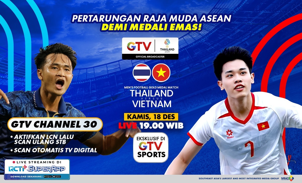 JAKATRTA, TEKAPE.co – GTV, sebagai official broadcaster SEA Games 2025, akan menyiarkan langsung laga final cabang sepak bola putra yang mempertemukan Vietnam melawan Thailand.