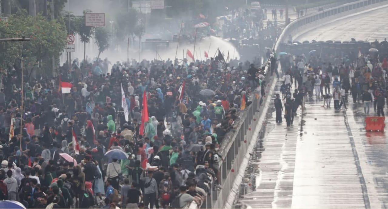 Sebelumnya, polisi lebih dulu membubarkan barisan massa di depan DPR dengan semburan watercannon dan tembakan gas air mata.