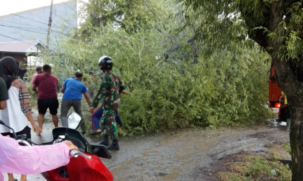 Petugas BPBD bersama dinas terkait segera melakukan evakuasi dan pembersihan pohon dari jalan.