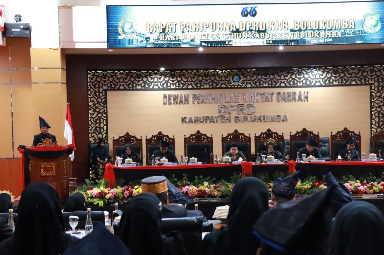 BULUKUMBA, TEKAPE.co – Peringatan Hari Ulang Tahun (HUT) ke-66 Kabupaten Bulukumba yang mengusung tema “Pembangunan Berkarakter dan Berkelanjutan” digelar melalui Rapat Paripurna Dewan Perwakilan Rakyat Daerah (DPRD) Kabupaten Bulukumba di Ruang Rapat Paripurna, Rabu (4/2/2026).