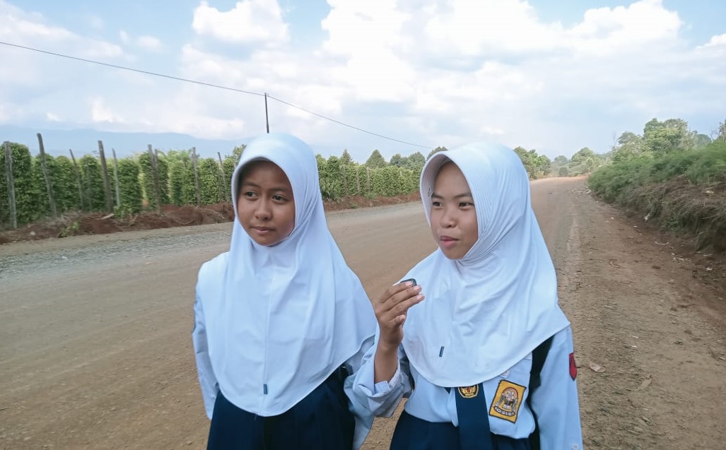 “Sebelum diperbaiki, jalannya jelek dan berlubang. Kalau hujan, jalan berlumpur, kami sering terlambat ke sekolah bahkan hampir jatuh kalau lewat kubangan,” ungkap salah satu siswi.