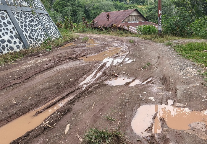 Saat musim penghujan tiba, ruas jalan itu berubah layaknya kubangan kerbau. Permukaan jalan yang licin, berlumpur, serta dipenuhi lubang membuat aktivitas masyarakat terganggu dan meningkatkan risiko kecelakaan bagi para pengguna jalan.
