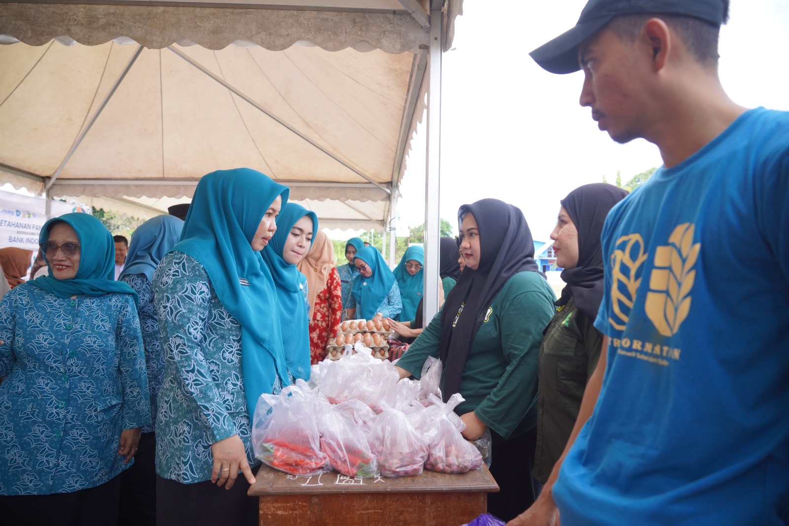 Ketua TP-PKK Kabupaten Luwu, Hj Kurnia Patahudding, bersama jajarannya meninjau stan penjualan bahan pangan pokok dalam kegiatan Gerakan Pangan Murah (GPM) yang digelar di Lapangan Opu Daeng Risaju, Kelurahan Tampumia Radda, Kecamatan Belopa, Rabu, 04 Juni 2025. GPM diselenggarakan oleh Pemkab Luwu melalui Dinas Ketahanan Pangan guna menjaga stabilitas pasokan dan harga jelang Idul Adha 1446 H. (ist)