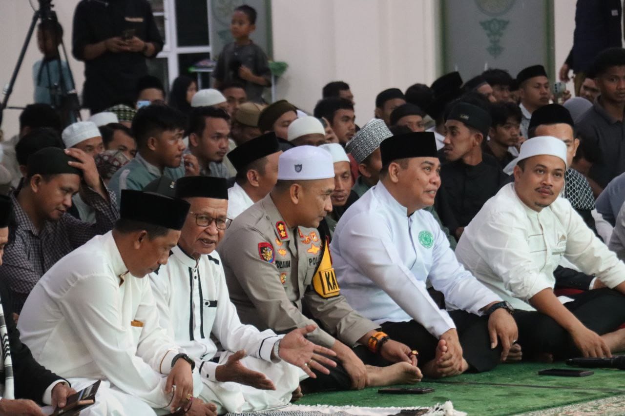 Kapolres Morowali, AKBP Zulkarnain, bersama para jamaah mengikuti Tabligh Akbar, dzikir dan doa bersama di Masjid Nurul Taqwa, Desa Bahodopi, Kecamatan Bahodopi, Kabupaten Morowali, Senin (22/12/2025) malam. (ist)