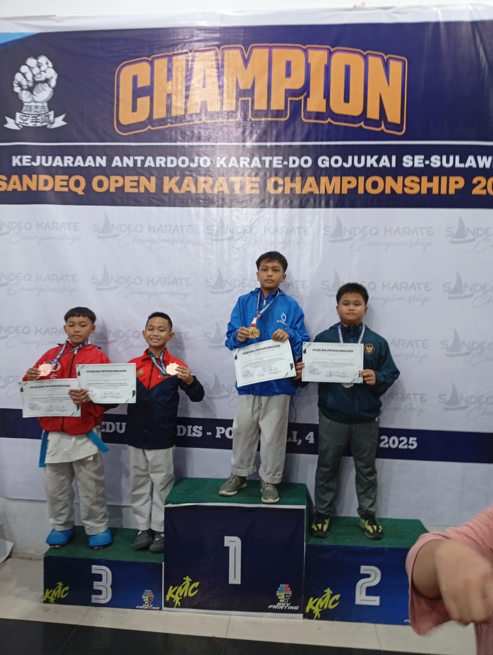 POLMAN, TEKAPE.co – Karateka belia asal Kabupaten Luwu, Sulawesi Selatan, Muh Abid Arbi Arsyad, menambah koleksi prestasinya di arena tatami. Dalam ajang Sandeq Open Karate Championship 2025 yang berlangsung di Polewali Mandar, Sulawesi Barat, Abid Arbi Arsyad keluar sebagai juara pertama di kelas kumite perorangan putra +35 kg pra pemula.