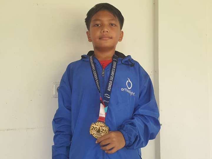 Karateka Cilik Luwu, Muh Abid Arbi Arsyad Raih Medali Emas di Kejuaraan Sandeq Open 2025
