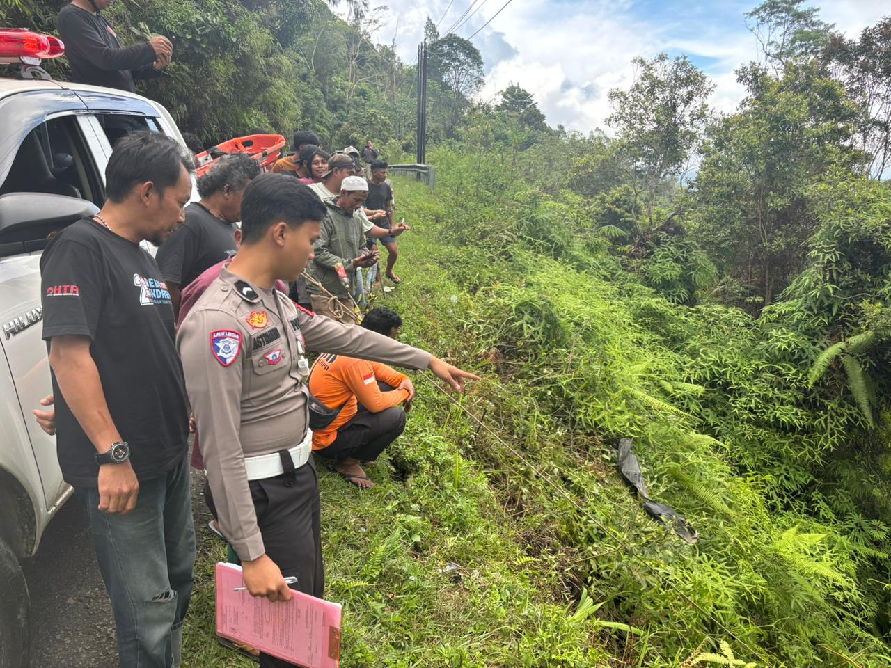 Diduga, pengemudi berusaha menghindari kendaraan dari arah berlawanan, namun upaya itu membuat mobil keluar jalur dan menabrak sisi jalan.