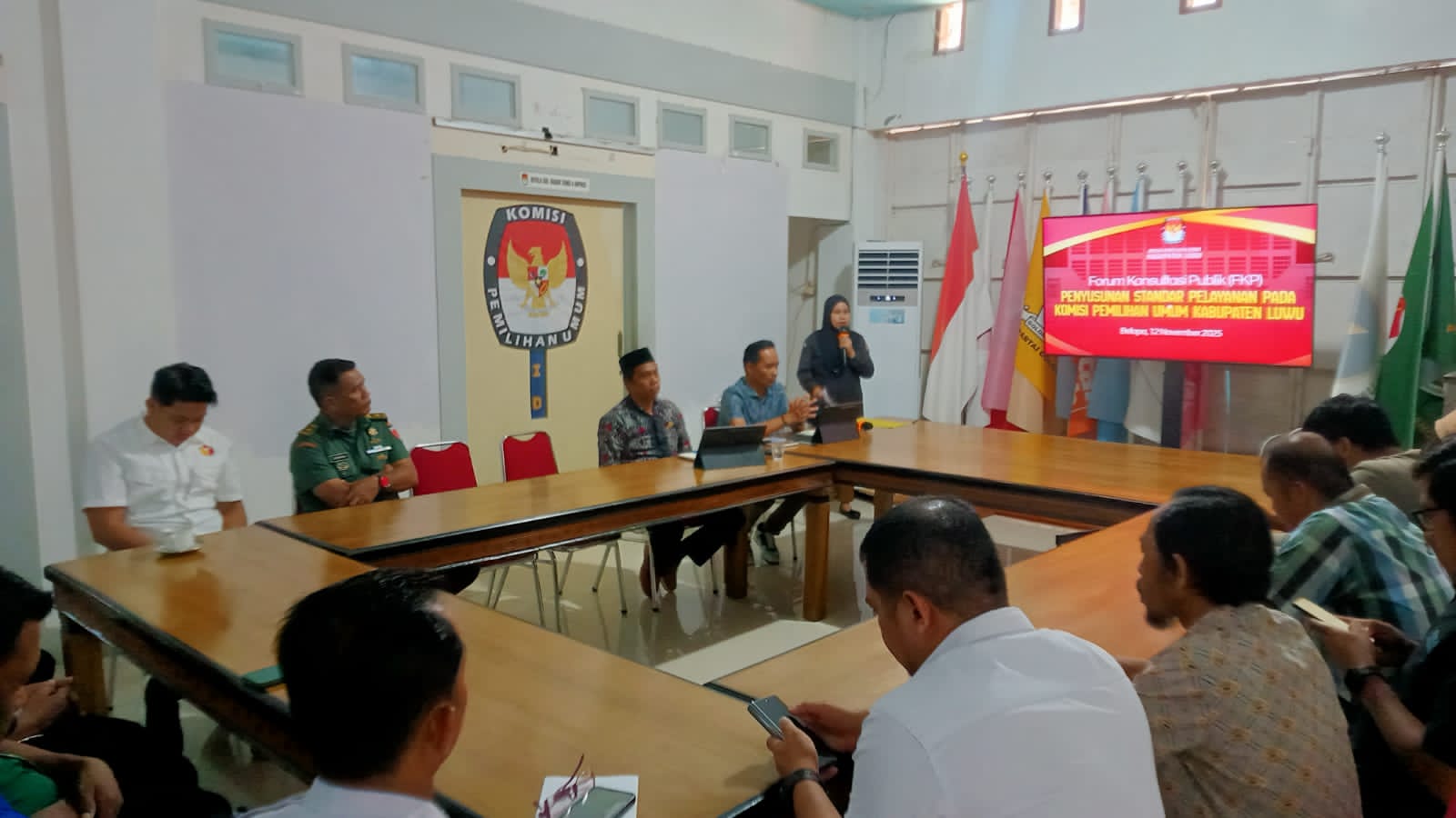 LUWU, TEKAPE.co – Komisi Pemilihan Umum (KPU) Kabupaten Luwu menggelar Forum Konsultasi Publik (FKP) Penyusunan Standar Pelayanan di Kantor KPU Luwu, Rabu, 12 November 2025.