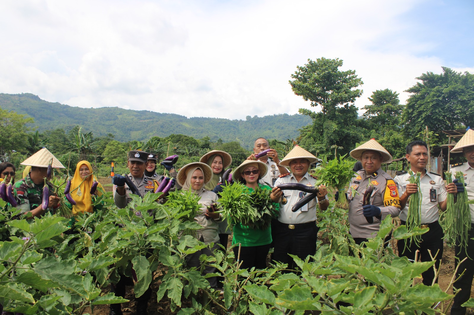 Pada kesempatan tersebut, warga binaan memanen sejumlah komoditas hortikultura, seperti terong, kangkong dan kacang panjang.