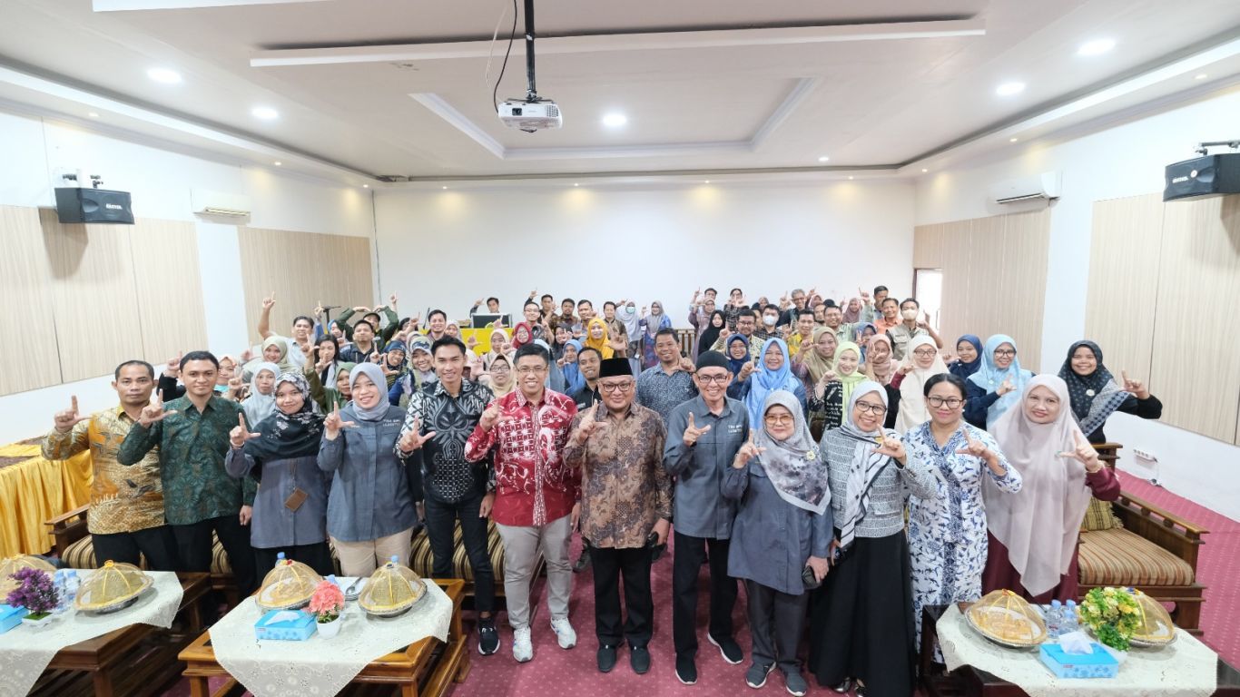 Sesi foto bersama seusai monitoring dan evaluasi (monev) terhadap Tunjangan Profesi Dosen (TPD) dan Tunjangan Kehormatan Guru Besar (TKGB) non-PNS di Universitas Cokroaminoto Palopo (UNCP), Sabtu 16 Agustus 2025. (ist)