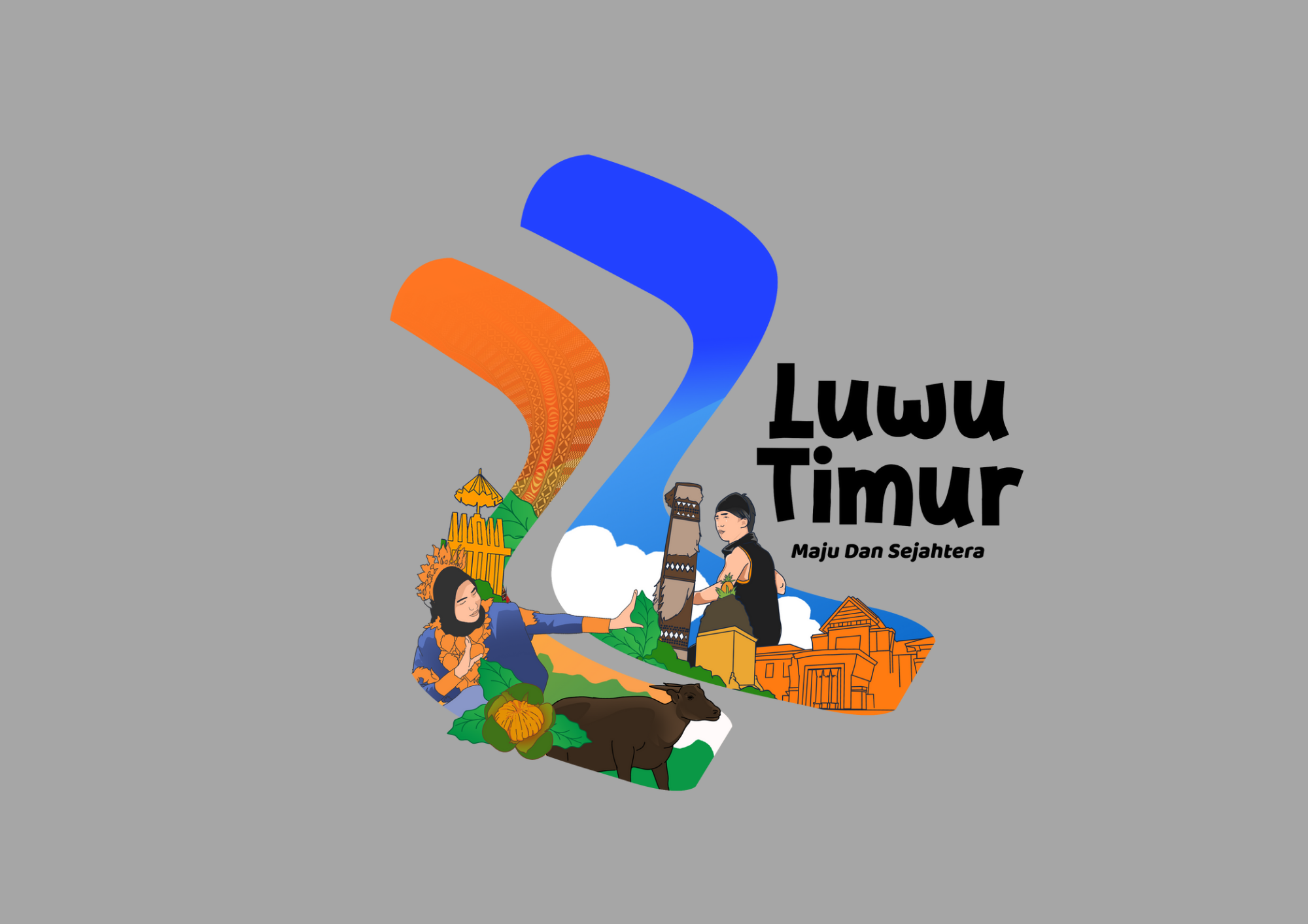 Font bertuliskan ‘Luwu Timur’ dalam logo menggunakan gaya yang tegas, modern, dan sedikit playful — menggambarkan daerah yang kuat dalam identitas namun tetap ramah dan terbuka.