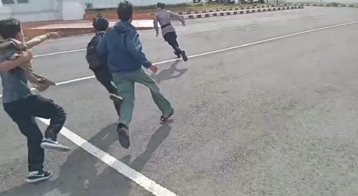 Ketegangan meningkat saat mahasiswa terlihat mengejar seorang anggota polisi yang berada di sekitar lokasi.