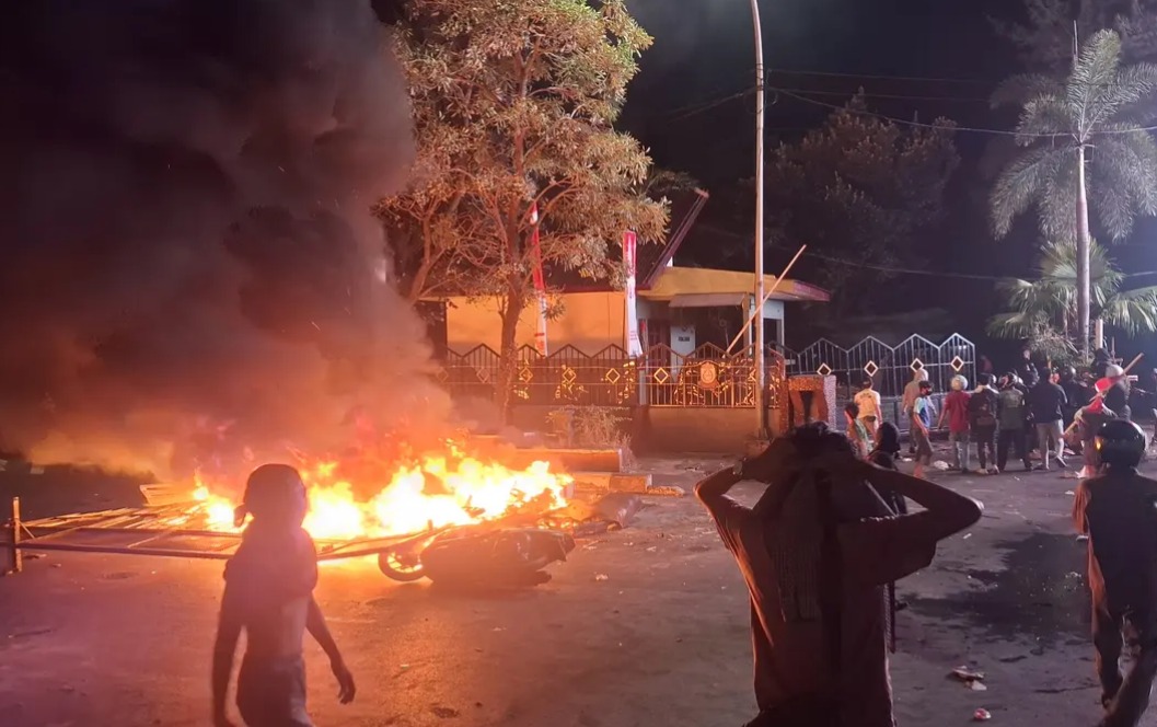 Pagar utama kantor wakil rakyat itu dirusak, enam sepeda motor serta satu mobil hangus dibakar.