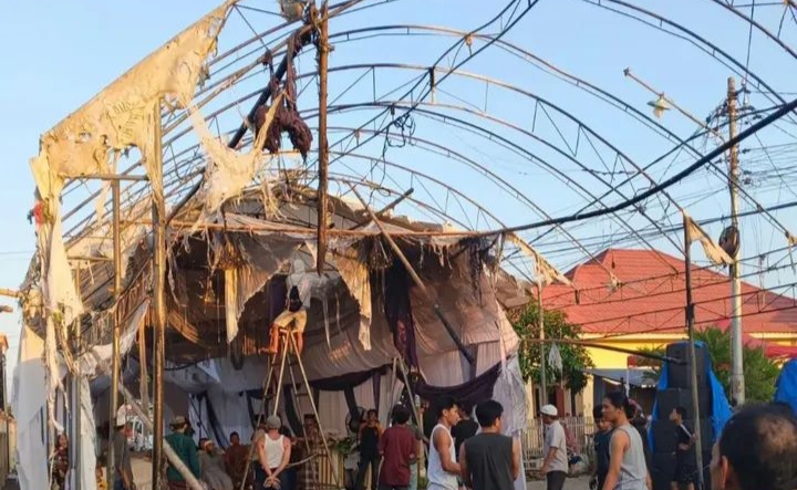 Tenda pelaminan itu diketahui milik Janur Decoration yang disewa oleh pihak keluarga tuan rumah, Muh Anis.