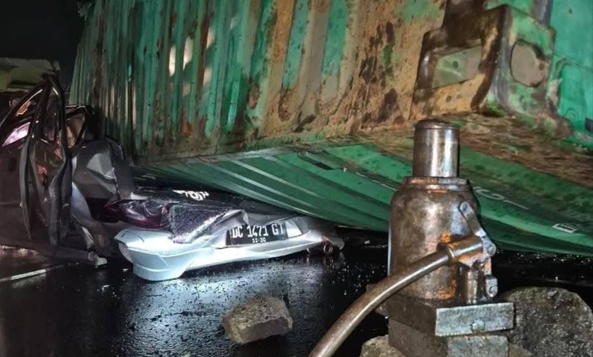 Mobil Keluarga Tertimpa Kontainer, Ayah dan Dua Anak Tewas