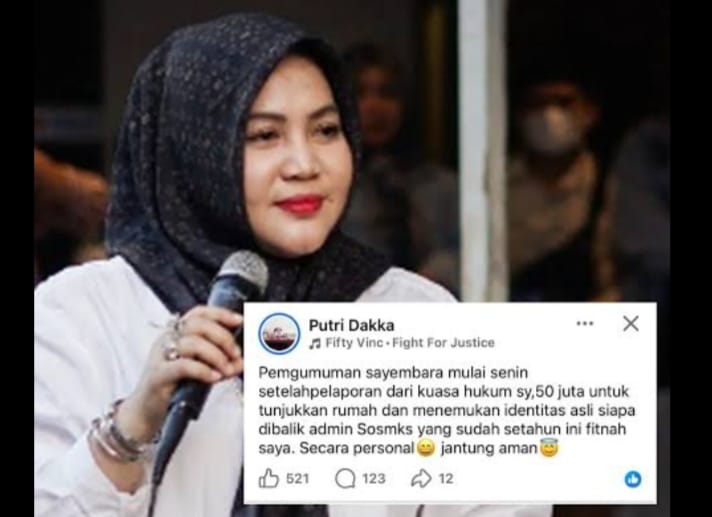Putri Dakka, melalui Instagram Story-nya, membagikan surat kuasa kepada tiga pengacara untuk menangani hal tersebut. Langkah ini memicu respons dari kelompok advokat dan organisasi masyarakat, termasuk Ketua Celebes Law and Transparency yang menyatakan siap mendampingi admin akun tersebut.