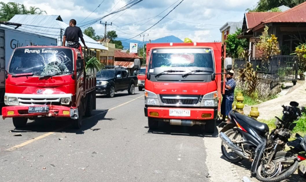 Seorang pelajar SMK Harapan berinisial MS (16), yang mengendarai sepeda motor Honda Revo Vit bernomor polisi DP 4184 KI, menabrak truk bernopol DP 8995 KC di persimpangan menuju SMK Negeri 2 Kesu.