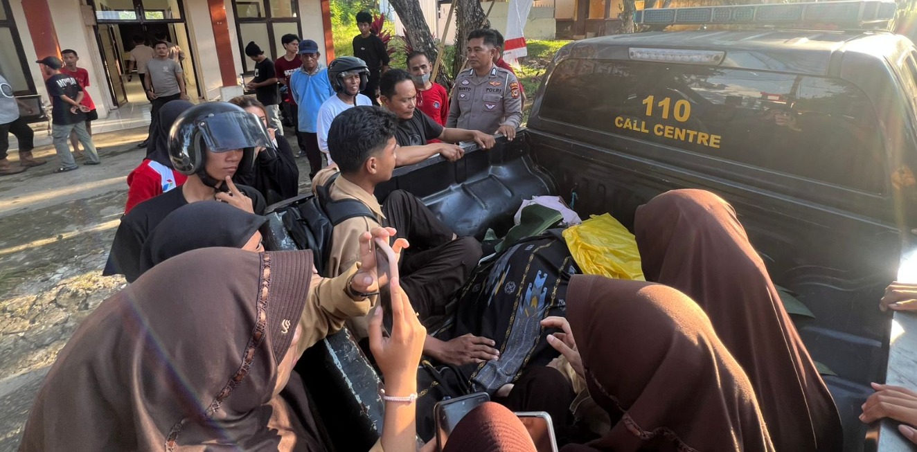 Suci yang dibonceng terpental ke arah berlawanan dan masuk ke kolong truk Hino tongkang hijau DD 8826 XD yang dikemudikan Arfin (52), warga Lamasi, Kabupaten Luwu.
