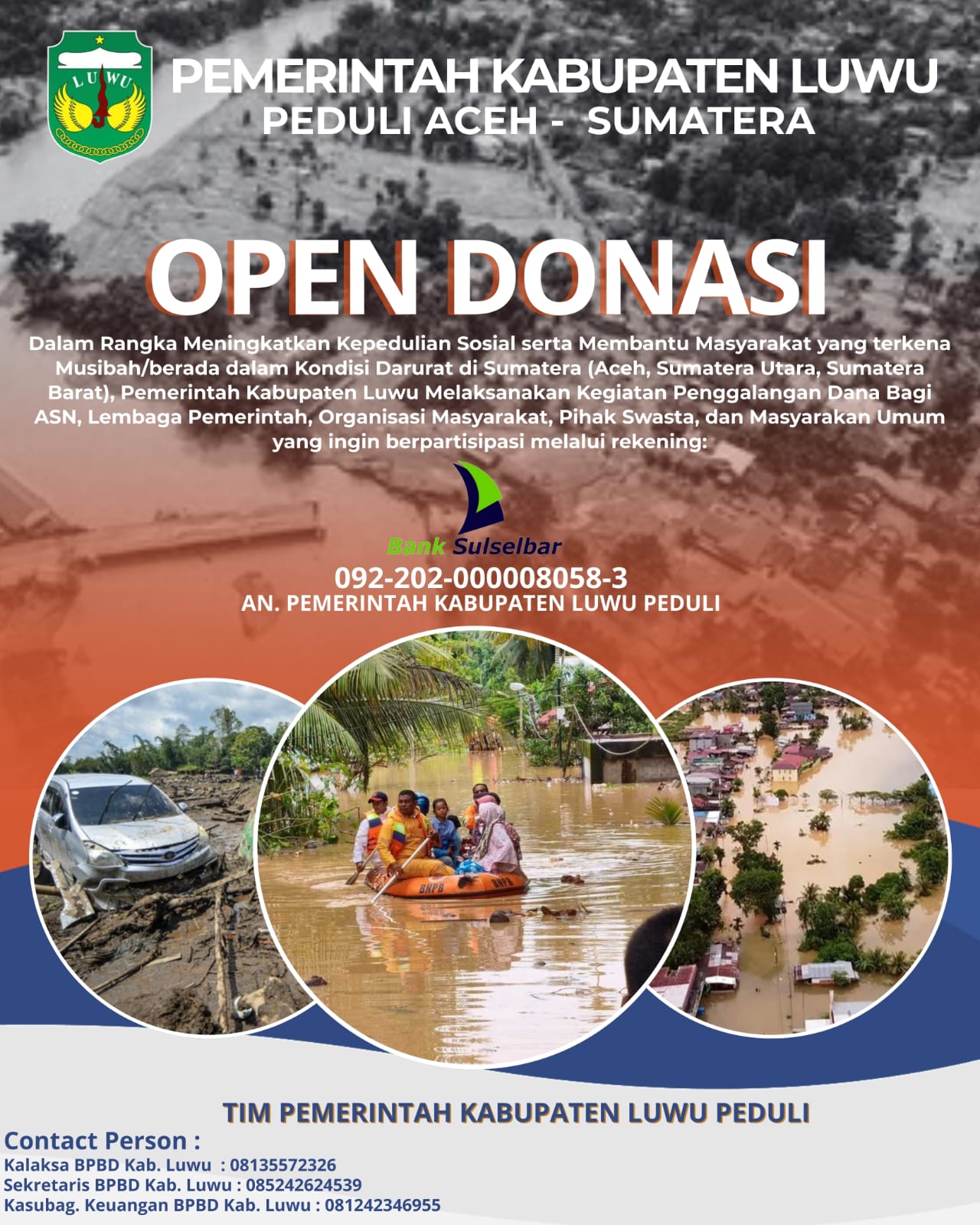 “Pemda Luwu sekarang, sementara menggalang dana untuk bantuan korban bencana Sumatera dan Aceh, melalui Rekening Sulselbar Norek: 092-202-000008058-3. An. ‘Pemerintah Kabupaten Luwu Peduli’,” ujar Tenriesa.