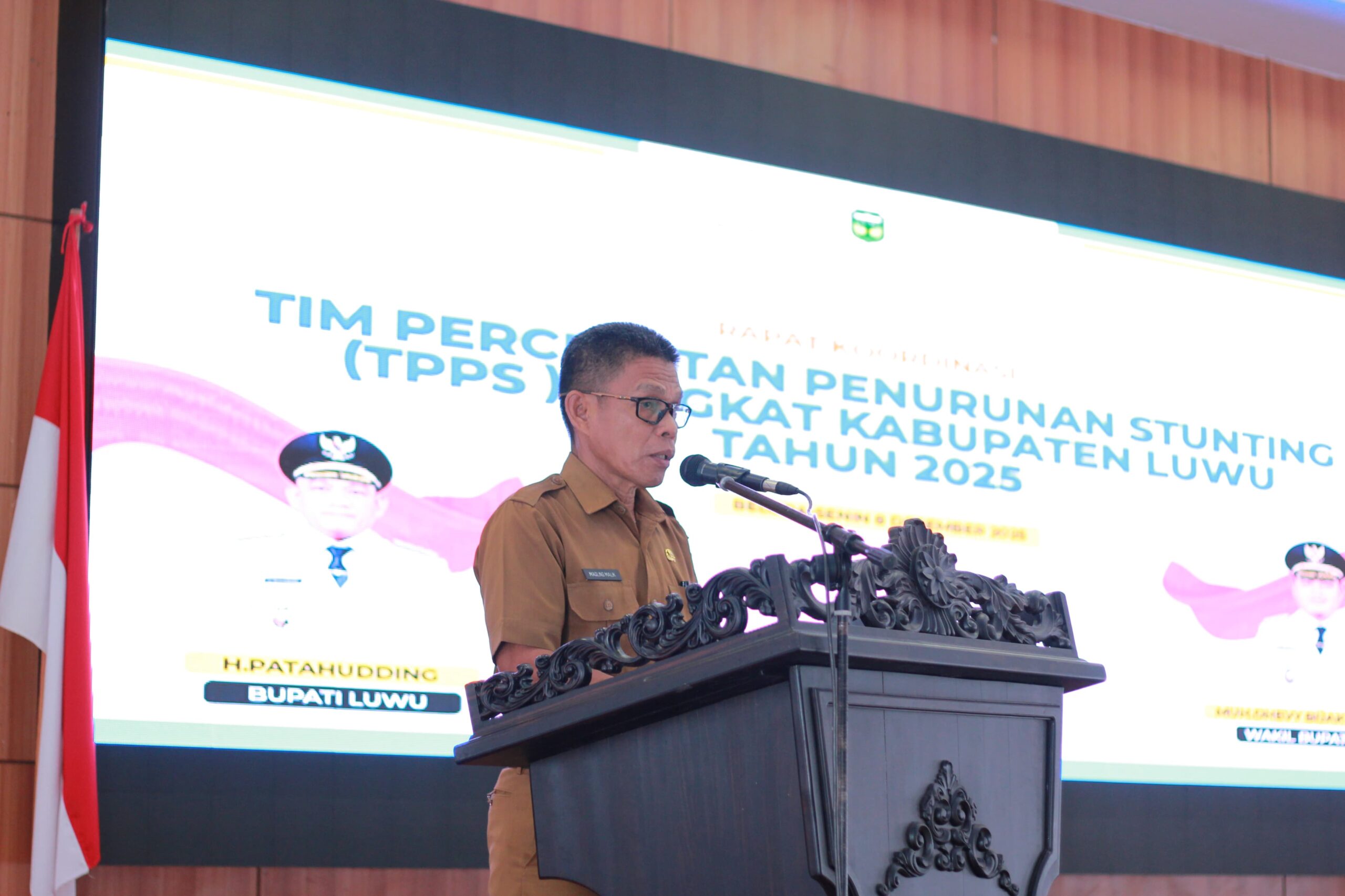 LUWU, TEKAPE.co – Pemerintah Kabupaten Luwu menggelar Rapat Koordinasi Tim Percepatan Penurunan Stunting (TPPS) di Ruang Pola Andi Kambo, Kantor Bupati Luwu, Senin, 8 Desember 2025. Kegiatan ini diikuti 242 peserta yang terdiri atas perangkat daerah, Tim Penggerak PKK, camat, kepala desa dan lurah, kepala puskesmas, serta penyuluh KB.