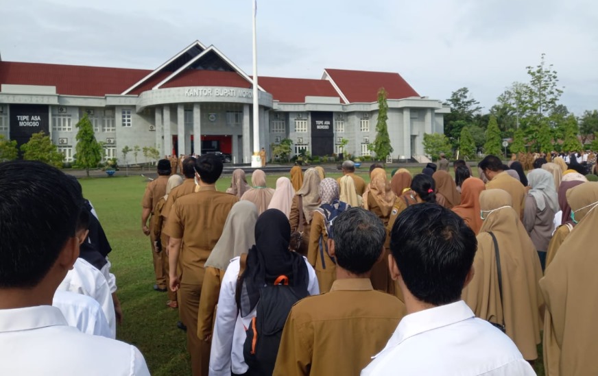 Apel tersebut dipimpin oleh Penjabat (Pj) Sekretaris Daerah (Sekda) Morowali, Drs. H. Abdul Wahid Hasan, M.Pd., dan dihadiri oleh Pj Bupati Morowali, Drs. Yusman Mahbub, M.Si., para asisten, staf ahli, serta pimpinan Organisasi Perangkat Daerah (OPD) lingkup Pemkab Morowali. Apel juga diikuti oleh Aparatur Sipil Negara (ASN) dan Pegawai Harian Lepas (PHL) di lingkungan Pemkab Morowali.