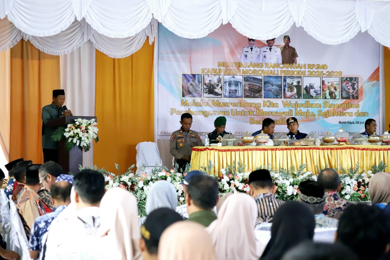 Kegiatan bertema “Melalui Musrenbang Kita Wujudkan Sinergitas Pembangunan untuk Morowali Maju, Sejahtera dan Berkeadilan” itu berlangsung di Aula Kantor Camat Bumi Raya, Kamis 3 Juli 2025.