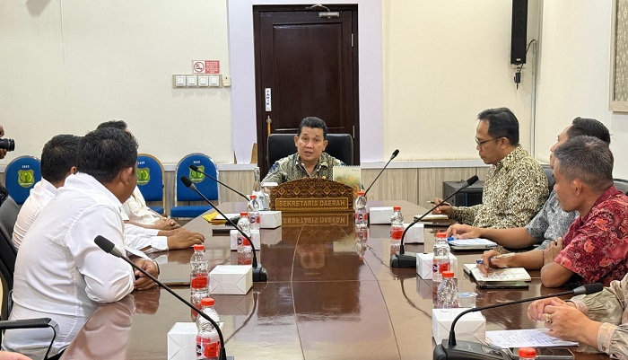 Penjabat Sekretaris Daerah (Pj Sekda) Muba, Drs Syafaruddin MSi, saat menerima audiensi Pengurus Badan Dapur Nasional Kabupaten Muba di Ruang Rapat Sekda, Kamis (22/1/2026). (hms)