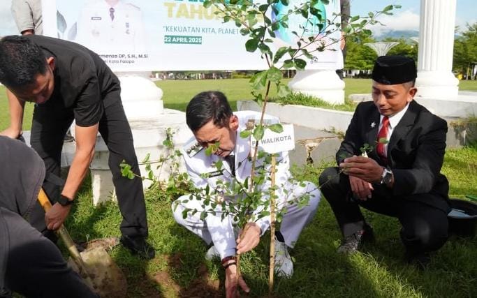 Penanaman pohon dilakukan secara serentak di seluruh wilayah Kota Palopo sebagai bagian dari rangkaian kegiatan peringatan Hari Bumi Sedunia 2025.