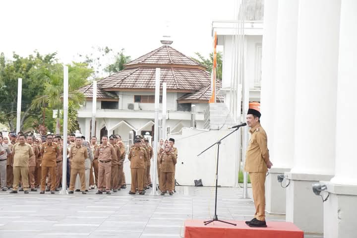 PALOPO, TEKAPE.co – Penjabat (Pj) Wali Kota Palopo, Firmanza DP memimpin apel gabungan pertama sekaligus kegiatan halal bihalal bersama jajaran Pemerintah Kota Palopo, Selasa (8/4/2025).