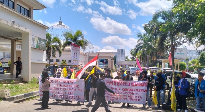 Massa PMII membawa sejumlah tuntutan, di antaranya mendorong evaluasi tunjangan rumah DPR, moratorium kunjungan kerja ke luar negeri, mendukung pengesahan RUU Perampasan Aset, serta menolak kenaikan Pajak Bumi dan Bangunan (PBB-P2) yang dinilai membebani masyarakat.