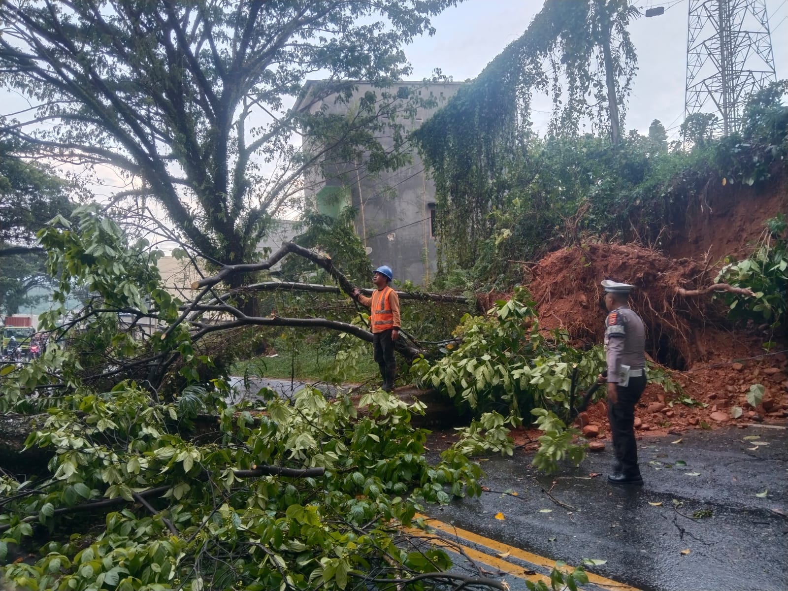 Dengan dukungan BPBD dan masyarakat, batang pohon yang sempat menutup jalur utama berhasil dipindahkan dalam waktu singkat.